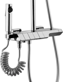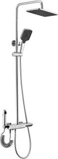 Ervaar comfortabel en veilig douchen met deze complete doucheset voorzien van thermostaatkraan. De set combineert een royale regendouche (overhead) met een praktische handdouche, zodat u eenvoudig kunt wisselen tussen een ontspannende regenstraal en gerichte spoelwaterstraal. De hoogwaardige materialen en het doordachte ontwerp garanderen betrouwbaarheid en duurzaamheid, zodat u jarenlang plezier hebt van uw nieuwe doucheset.