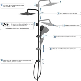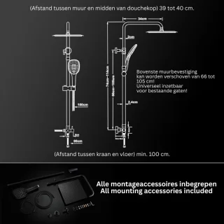 - Eenvoudige inbouw zonder kraan: Ontworpen als oplossing zonder kraan, je sluit de set snel aan op je bestaande doucheaansluiting — geen sloopwerk, geen gedoe.
