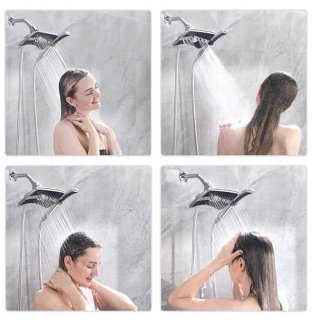 Verander uw dagelijkse douche in een spa-ervaring met deze complete dubbele douchekop comboset. De set bevat een ruime regendouche en een flexibele handdouche, beide uitgevoerd met geavanceerde dompeltechnologie die zorgt voor sterke waterdruk en een brede dekking. De royale hoofddouche van bijna 8 inch (ca. 20 cm) omsluit uw lichaam met een zachte, ontspannende regenstroom, terwijl de handdouche met de turbospray-instelling snel vuil en shampoo wegspoelt wanneer dat nodig is.