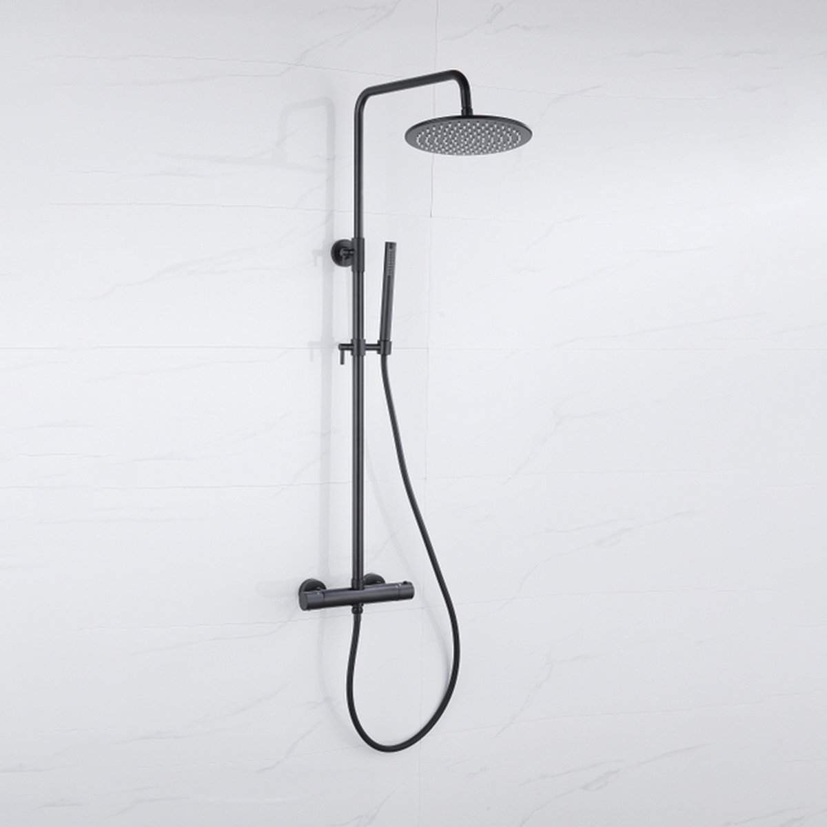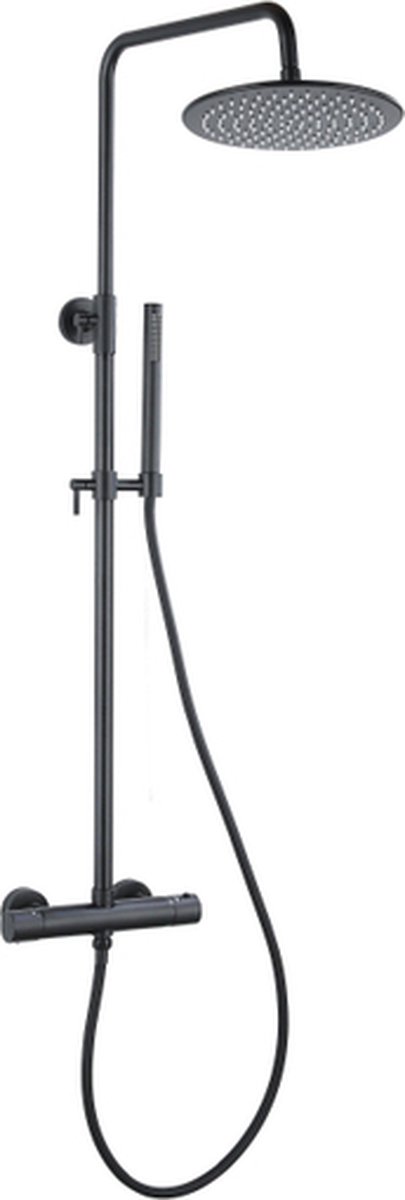 Transformeer uw badkamer in een luxe oase met de Fortifura Calvi Thermostatische Regendoucheset. Met een strakke, matzwarte afwerking en een eigentijds design voegt deze set niet alleen een stijlvolle touch toe, maar biedt hij ook ongeëvenaard douchecomfort. Of u nu snel wilt afspoelen of uitgebreid wilt genieten van een ontspannen badkuur, deze doucheset maakt het mogelijk.