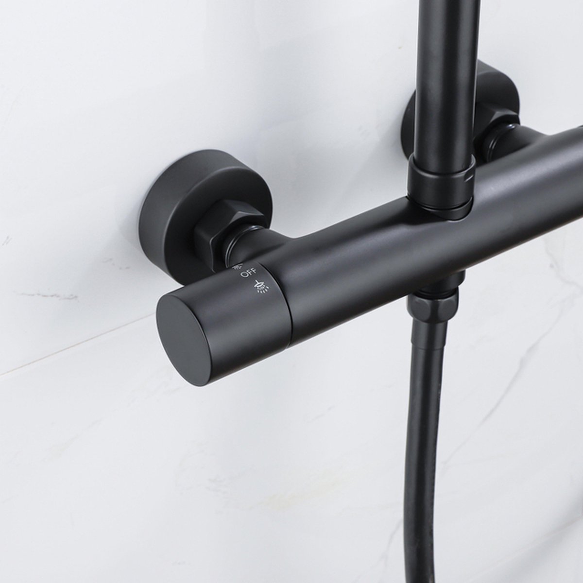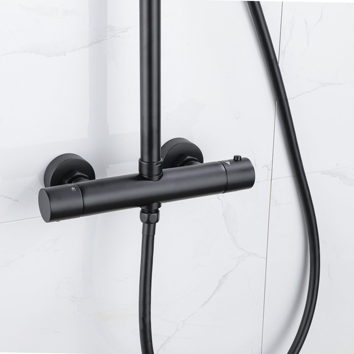 Deze functionele set combineert stijl met praktische toepassingen. Het thermostatische systeem garandeert veiligheid en nauwkeurigheid, terwijl de handdouche flexibel inzetbaar is voor gerichte reiniging of het wassen van kinderen en huisdieren. De stevige, gladde slang en het stevige, elegante design maken de onderhoudsbeurt snel en eenvoudig, zodat uw badkamer er altijd verzorgd uitziet.