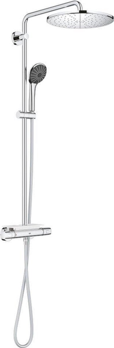 Breng stijl en comfort naar uw badkamer met het GROHE Vitalio Joy XXL 310 douchesysteem. Dit systeem combineert een modern design met geavanceerde technologie voor een ultieme douche-ervaring die zowel functioneel als veilig is. Met een royale hoofddouche, veelzijdige handdouche en gebruiksvriendelijke functies zorgt dit systeem voor iedere keer een verfrissende en ontspannende douchebeurt.