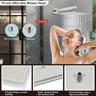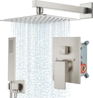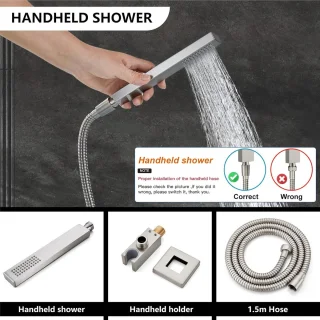 Geef uw badkamer direct een luxe upgrade met dit complete wandgemonteerde regendouche systeem. Ontworpen voor dagelijks gebruik, combineert het systeem een royale vierkante regendouchekop (25,5 cm) met een praktische handdouche. Dankzij de thermostatische regeling en de drukbalancerende klep geniet u altijd van een stabiele, aangename watertemperatuur – ook bij wisselende waterdruk. Perfect om elke dag ontspannen en verfrist te beginnen.