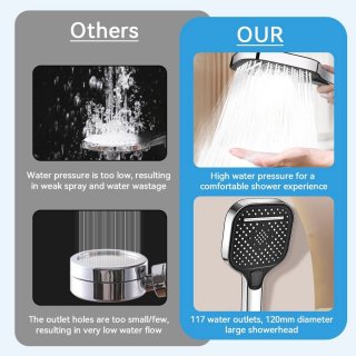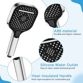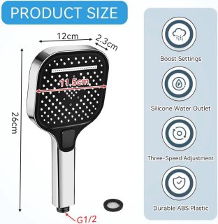 Upgrade je dagelijkse douche met deze stijlvolle en functionele vierkante handdouche. Gemaakt van licht en duurzaam ABS-materiaal combineert hij modern design met doordachte techniek: 117 silicone sproeipunten en een drukverhogende technologie zorgen voor een gelijkmatige, fijne waterstraal — zelfs bij lage waterdruk. Ideaal voor dagelijkse lichaamsverzorging, het snel afspoelen van shampoo én het baden van huisdieren.